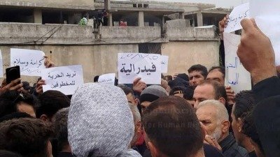 ورفع المحتجون شعارات تطالب بوقف القتل وتعزيز اللامركزية الإدارية، بالإضافة إلى مطالب بإطلاق الموقوفين الذين جرى اعتقالهم بعد سقوط نظام بشار الأسد المخلوع. ومن اللافتات: “اللامركزية.. لا للإرهاب.. لا للسلاح المنفلت”، بحسب ما أظهرت الصور المتداولة.
