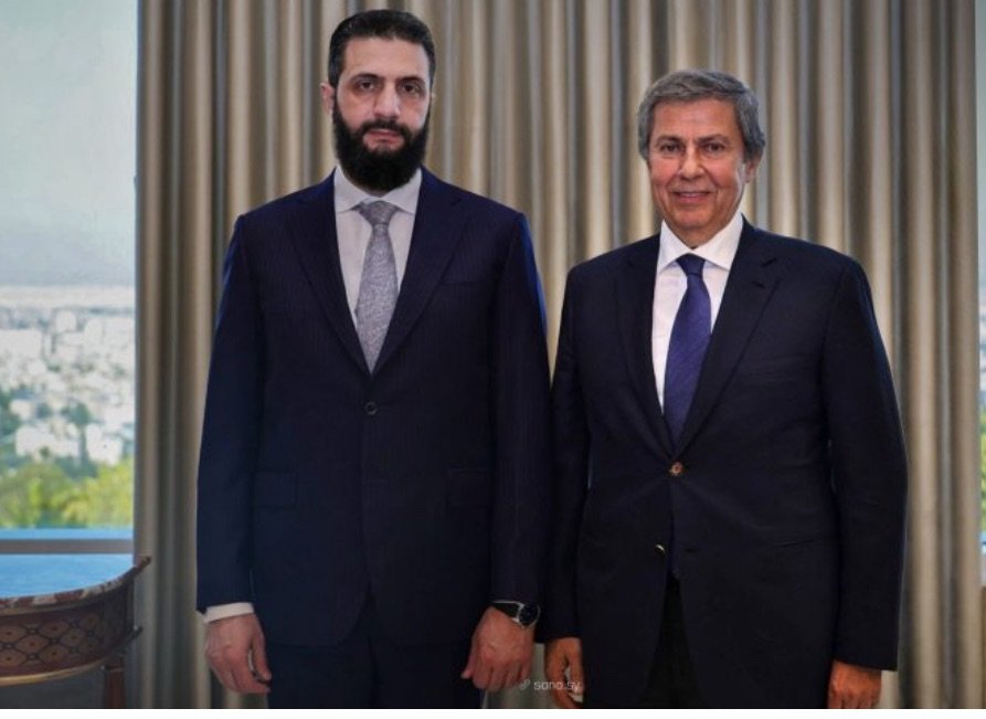 التقى الرئيس أحمد الشرع في قصر الشعب بدمشق اليوم الإثنين مع رجل الأعمال السوري محمد كامل صباغ شرباتي.